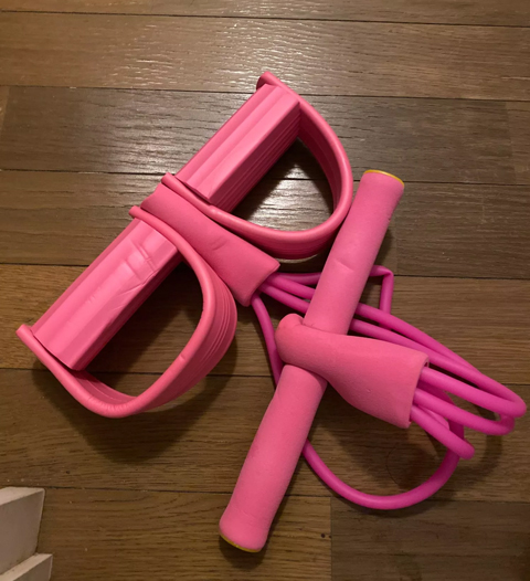 Я давно искала такой тринажер. Удобный в переноске. Можно заниматься не отрываясь от просмотра телевизора. Детям